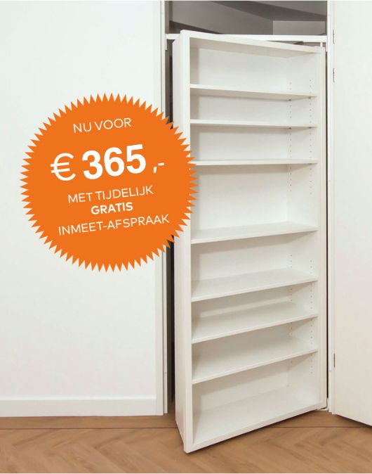 Trapkasten zijn vaak diepe en onhandige kasten, waardoor het moeilijk is om een nette, praktische opbergruimte te creëren. De SlimmeKast zorgt voor extra opbergruimte welke praktisch en overzichtelijk is. Naast de extra opbergruimte in de SlimmeKast blijft u nog gewoon de opbergruimte achter de kast houden. Nu €365,- incl. gratis inmeet-belletje.